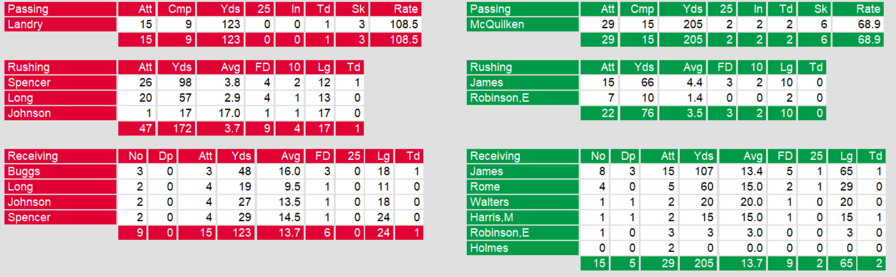 McQuilken fought through that adversity, accounting for the only two touchdowns scored by the Federals in the game. Craig James added over 170 total yards rushing and receiving. But, Washington simply couldn’t overcome the miscues by their quarterback and their coach vowed to work on turnovers in practice this week.