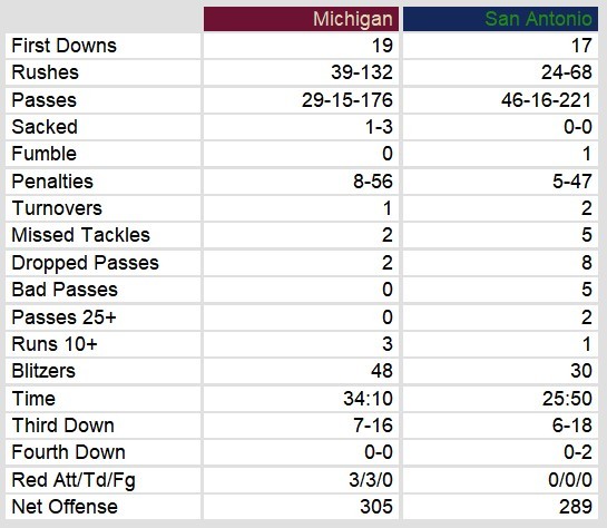 Risher made up for the interceptions somewhat with two touchdown passes. But, the rest of the offense managed only 4 yards per rush, went 3-12 on third down conversions, and took 6 sacks for 42 yards lost. All in all, a dominant performance by Oakland who put the West division on early warning.