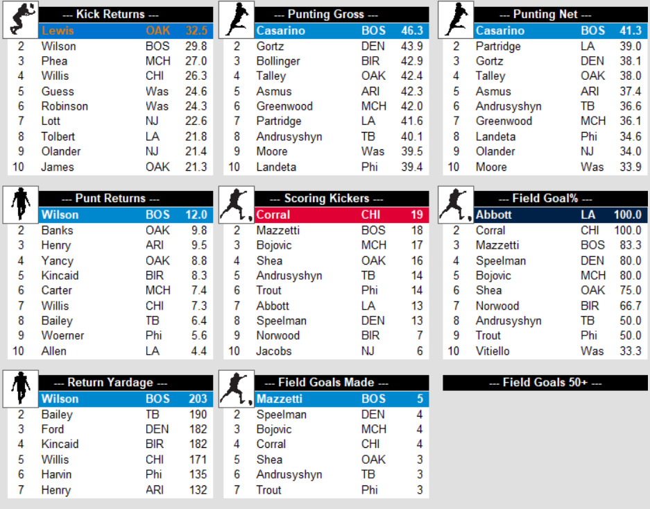 1983 USFL Stats after Week 2 Stats Weekly Stats March 14, 2023March 12, 2023 Team Stats League Snapshot Passing Leaders Rushing Leaders Receiving Leaders Defense Leaders Special Teams Leaders