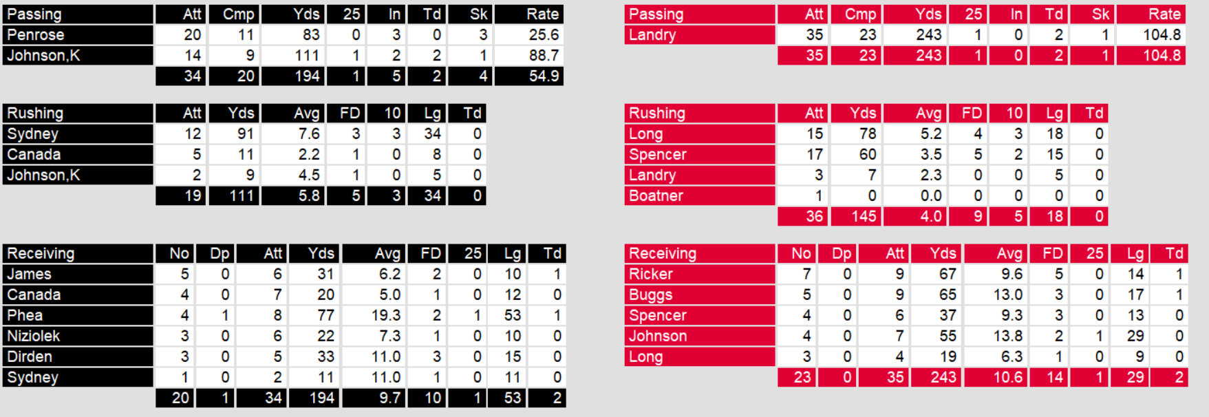 Chicago build a commanding 12-0 lead on field goals in the first half before exploding for 24 points in the second half behind two more touchdowns from the red hot QB Greg Landry. Don Schwartz added an interception return to close out the scoring for Chicago.