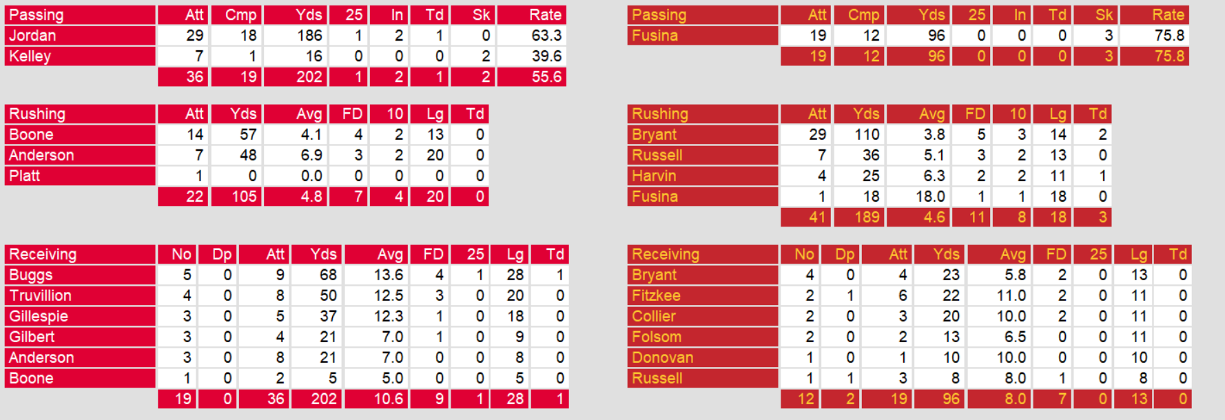 Philadelphia ran all over Tampa Bay, scoring three rushing touchdowns on 189 yards rushing. Quarterback Chuck Fusina managed less than 100 yards passing, allowing the run game to carry the team to an even 2-2 record and staying 1 game back of division leading Boston.