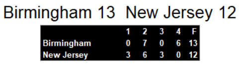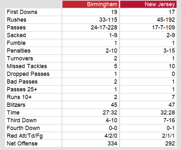 Birmingham continues their hot middle of the season streak. They’ve won 4 in a row and find themselves only 2 games back of Chicago and very much alive in the playoff hunt. They look to keep it going next week against Los Angeles at home. New Jersey runs into a potential buzz saw in undefeated Michigan.