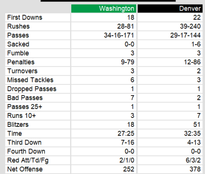 Washington kept it close, leading in the first half. Unfortunately, they let up 18 points in the second half and scored none, leading to the loss. Even so, they seem to have found something with quarterback Mike Hohensee and perhaps they can build something in the last part of the season and next year.