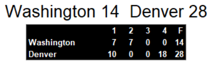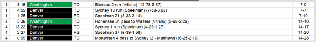 Make it two in a row for the Denver Gold. Behind a strong running game that gained 240 yards and scored two touchdowns, Denver beat down a Washington team that felt good about themselves after last week’s win over New Jersey. Harry Sydney ran for a bulk of the yards and scored both touchdowns, possibly establishing himself as the starter.