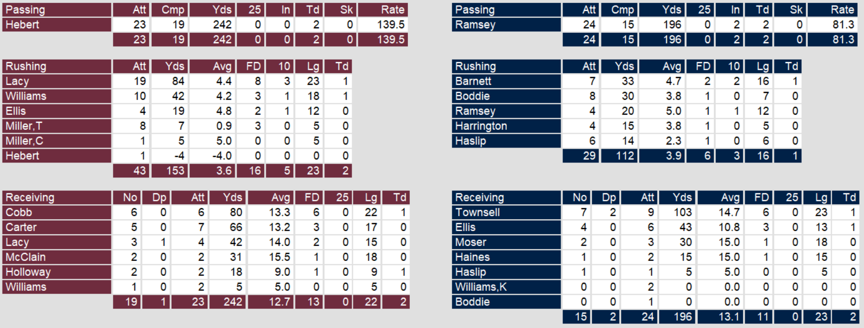 Los Angeles quarterback threw two touchdowns of his own and John Barnett ran one in. However, the comeback got stymied after Ramsey’s second touchdown with just under 9 minutes left in the game. With the loss Los Angeles drops to 5-10 and continues a frustrating end to a once promising season.