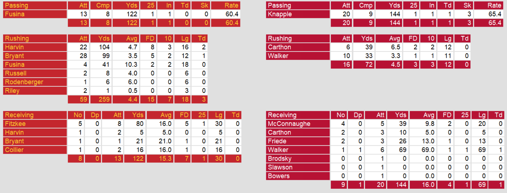 With starting quarterback Bobby Scott out, the offense leaned heavily on Herschel Walker. Walker scored the only touchdown of the game for New Jersey on a long pass, but struggled on the ground. He gained only 33 yards rushing and fellow back Maurice Carthon led the team. However, he gained only 39 yards.