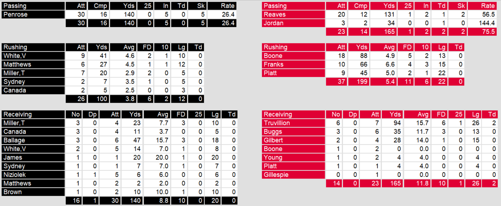 Tampa Bay shut out Denver on Monday night. The win puts their record at 5-12, below expectations at the beginning of the season. In the strong Central, they came in a distant last. But, the good news in this game is that WR Eric Truvillion scored two touchdowns, one from each quarterback. Tampa Bay finishes their season next week against division rival Birmingham.