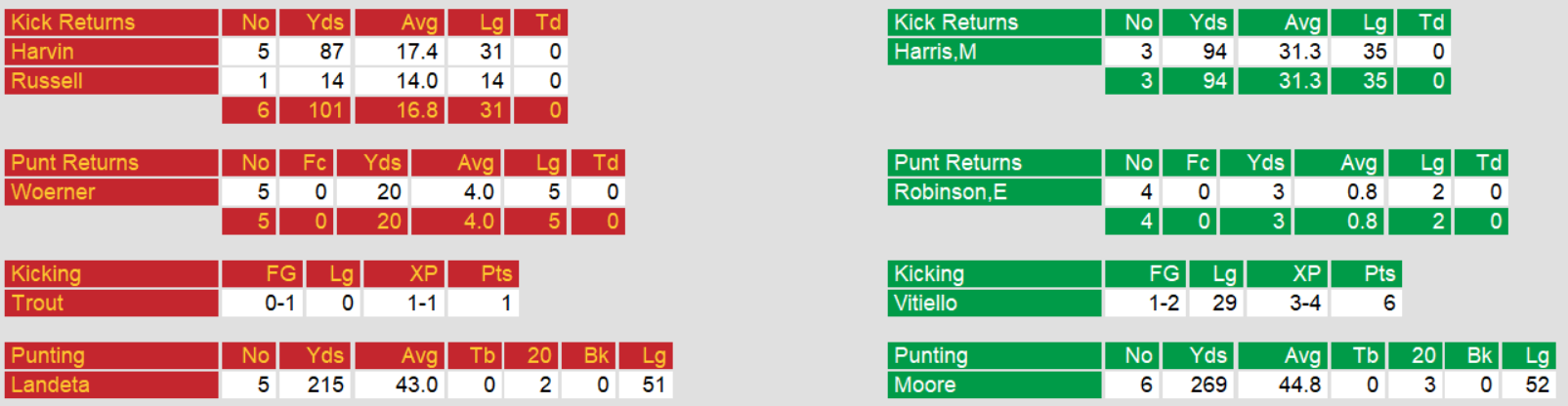Washington kept division rival Philadelphia under .500 by defeating them on the last week of the season. They excelled in all facets of the game, rushing for a touchdown, throwing for one, and returning a fumble for a score. The win also kept them out of the basement in their division.