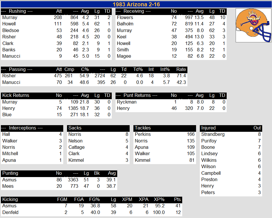 1983 Arizona Wranglers Team Stats