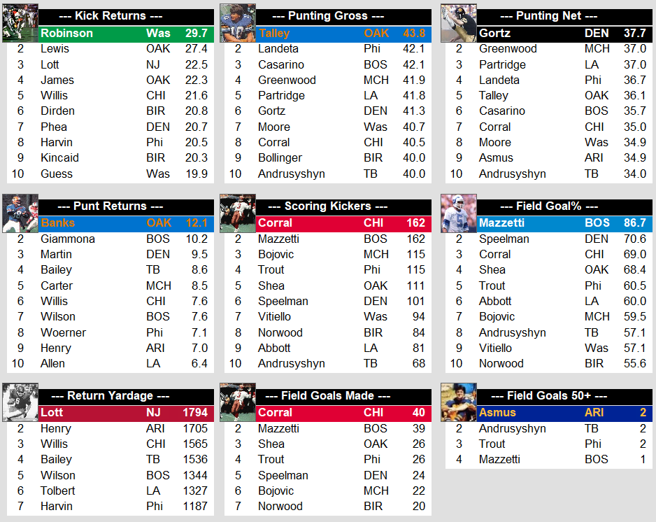1983 Regular Season USFL Stat Leaders Stats Weekly Stats August 22, 2023August 22, 2023 Snapshot Passing Rushing Receiving Defense Special Teams Team Stats