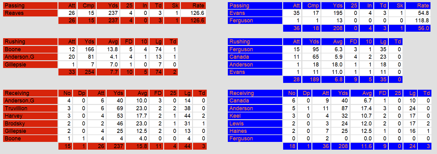 Week 2 started on Friday this week. Tampa Bay scored 40 plus points for the second time in two weeks. This time, though, they held off Arizona and got into the win column. Quarterback John Reaves again led the way with three touchdown passes. Tampa Bay added two running touchdowns to the total.