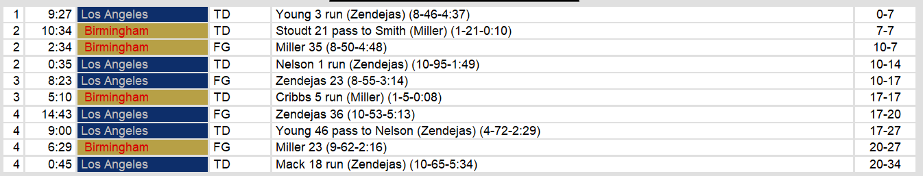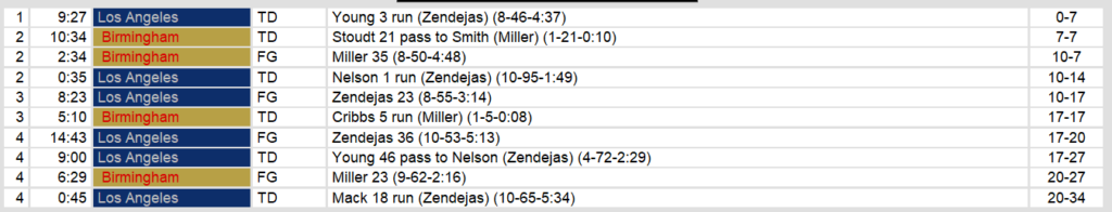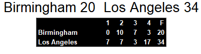 Birmingham Stallions 20, Los Angeles Express 34