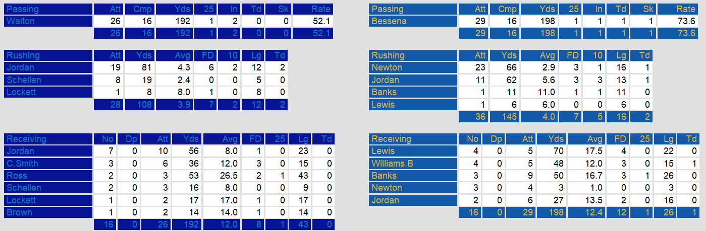 Boston kept the game close, cutting the lead to 10-7 and 17-14. The two teams then traded short drives before Oakland scored the game winning touchdown. They then sealed the game with a late interception, preventing any heroics.
