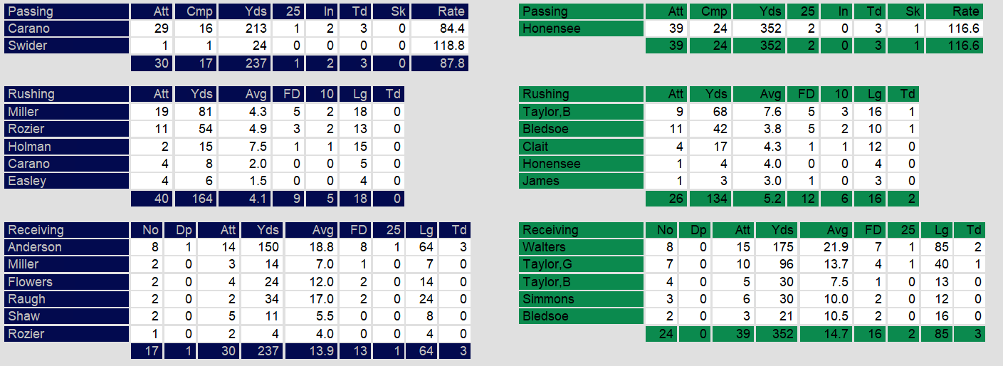Pittsburgh twice came back from a 14 point deficit. They also were driving to tie the game after the final Hohensee touchdown. They ran out of steam and turned the ball over on downs to seal the victory for the Federals.