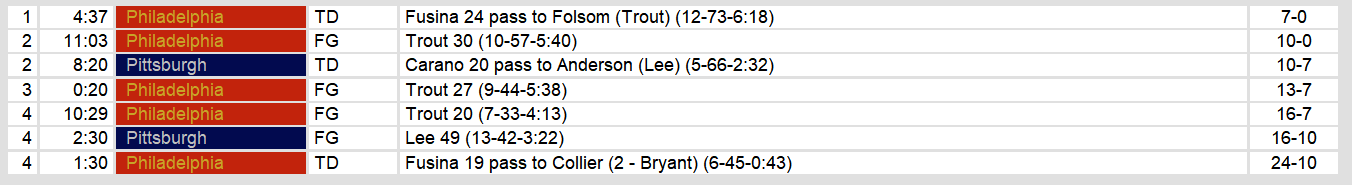 Philadelphia easily dispatched of the Pittsburgh Maulers to remain unbeaten on the season. Quarterback Chuck Fusina threw two touchdown passes in the game, to start and to finish the win. The game provides more fuel for a rivarly between the two teams.