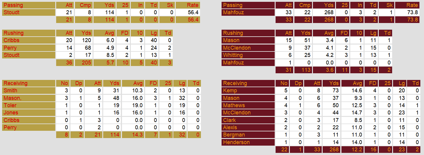Birmingham defeated Jacksonville in one of four Saturday games this week. Quarterback Cliff Stoudt only ran for a touchdown this game. But, Birmingham’s run game carried them, gaining 205 yards. Chuck Clanton intercepted Jacksonville twice, returning one for a score.