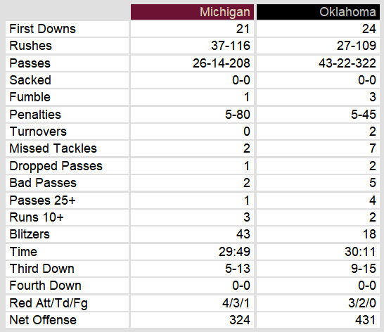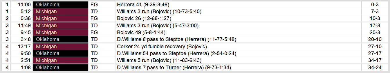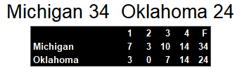 Michigan took down Oklahoma on Saturday afternoon. After an early field goal by the Outlaws, the Panthers built up a 27-10 lead. The two teams then traded touchdowns down the stretch and the Panthers held on for the victory.