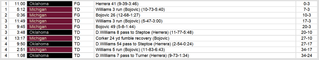 Oklahoma’s quarterback Doug Williams put the team on his back. He threw for three touchdowns in the game. However, that proved to not be enough with the Panthers having more firepower on both offense and defense. A costly fumble returned for a touchdown helped to bring about Oklahoma’s loss.