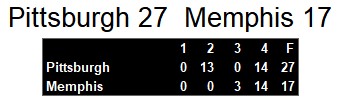 Pittsburgh defeated Memphis 27-17 Friday afternoon. Behind a strong defense that allowed less than 250 total yards and scored a touchdown and an offense that did just enough to outscore the Showboats, the Maulers got their third win of the season.