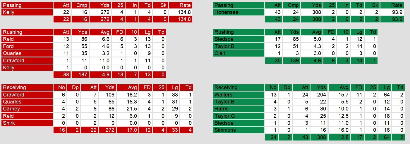 Memphis defeated the Federals in Washington. Behind four touchdown passes by their quarterback Walt Kelly and a fumble recovery by their defense, they took care of business. After Washington tied it up, Kelly threw two of his touchdowns to pull away at the end of the game.