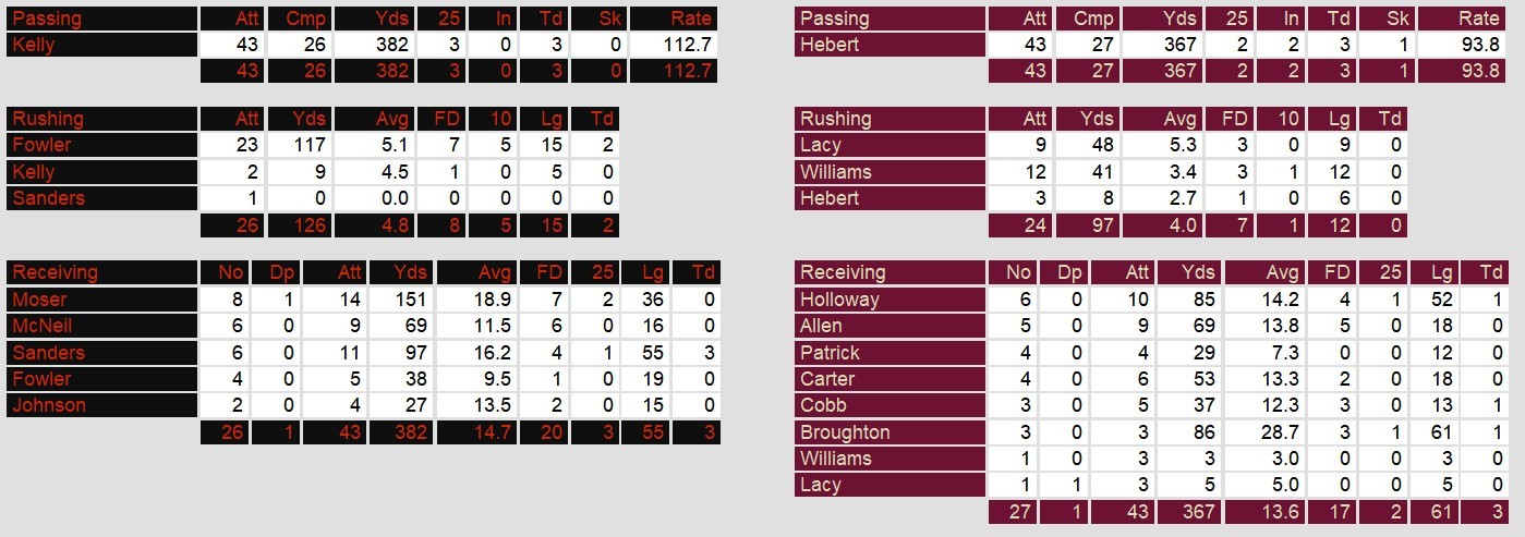 Michigan QB Bobby Hebert countered with three of his own, including 2 in an attempted 4th quarter comeback. Too little too late and the deficit proved too much to overcome for the Panthers.