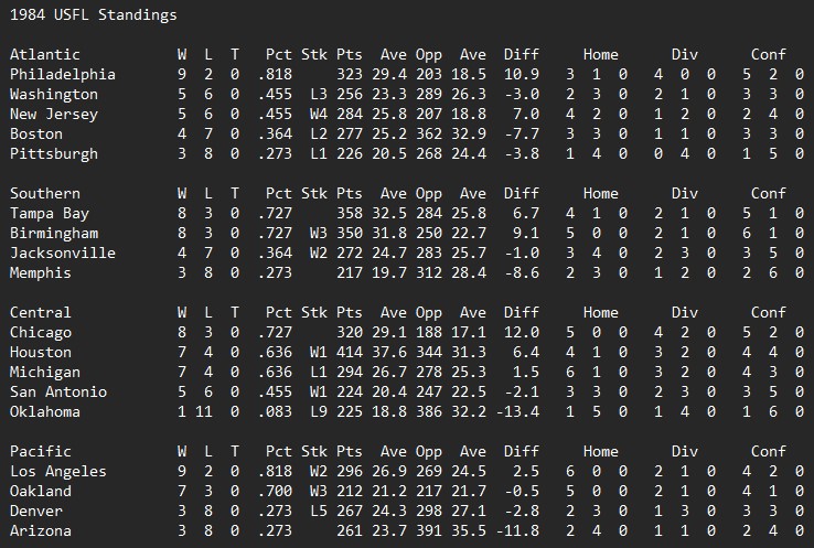 USFL Stat Leaders After Week 11 (1984)