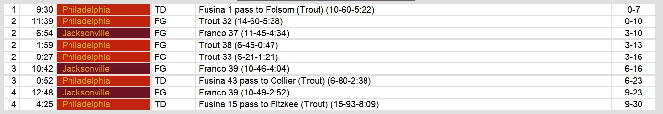 In the defensive aspect, Philadelphia’s players like Hendel, Jamison, and Johnson made impactful tackles, sacks, and interceptions, contributing to Jacksonville’s limited scoring opportunities.