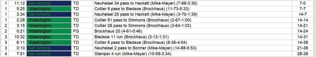 San Antonio Gunslingers 28, Washington Federals 38