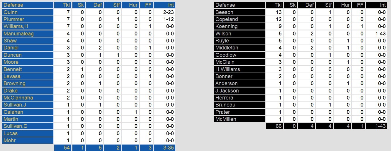 - Offense: Oakland dominated in total offensive yards, rushing yards, and first downs, showcasing their ability to control the game.