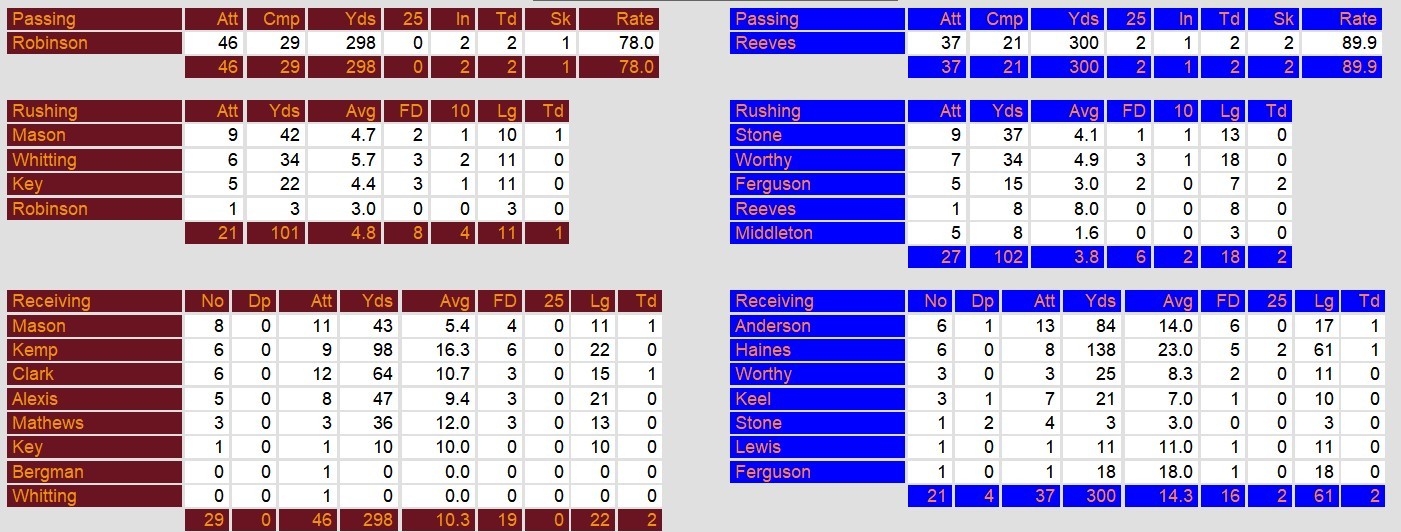 In an intense matchup during Week 16 of the 1984 USFL season, the Arizona Wranglers emerged victorious with a 34-24 win over the Jacksonville Bulls. Arizona displayed early dominance, securing a 21-3 lead by the end of the first quarter. The Wranglers’ offense, led by quarterback Reeves, showcased efficiency with Ferguson contributing two rushing touchdowns and a remarkable 61-yard touchdown pass to Haines. Despite a resilient effort from the Bulls, highlighted by Robinson’s two touchdown passes to Mason and Clark, Arizona’s defense, particularly Daniel and West in the secondary, proved pivotal. Daniel and West not only secured two interceptions each but also demonstrated exceptional play by returning both interceptions for touchdowns. Jacksonville faced challenges with turnovers, including fumbles by Mason and Robinson. The Wranglers’ balanced performance on both sides of the ball secured their victory in a game marked by impactful defensive plays and offensive prowess.