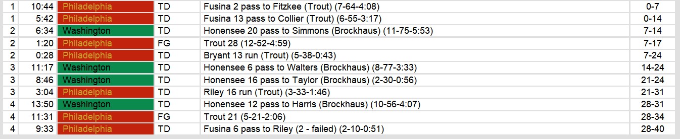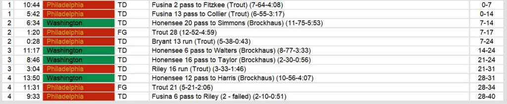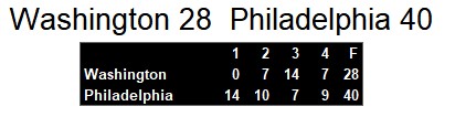 Washington Federals 28, Philadelphia Stars 40