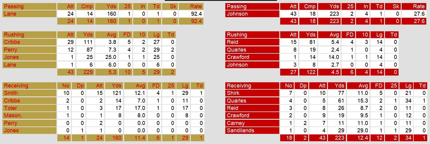 Memphis, on the other hand, faced challenges but managed to put points on the board. Quarterback Johnson completed 18 of 43 attempts for 223 yards, including a 34-yard touchdown pass to Quarles. The running game, led by Reid with 81 yards on 15 carries, demonstrated Memphis’s ability to gain ground.