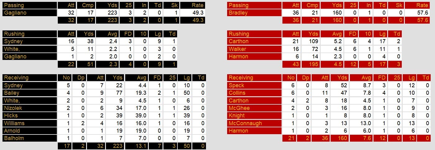 New Jersey showcased a balanced offensive approach, with 195 rushing yards and 160 passing yards. Their defense, led by Harper’s interception and a solid performance against the run, played a pivotal role in securing the win.