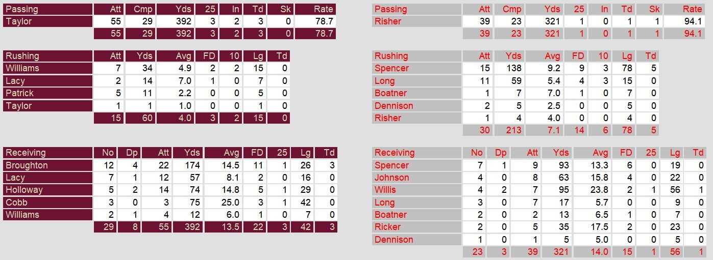 The game statistics highlight Chicago’s offensive prowess, with Spencer’s standout performance, accumulating 138 rushing yards and five touchdowns. Risher efficiently managed the passing game, connecting with multiple receivers, including a notable 56-yard touchdown pass to Willis.