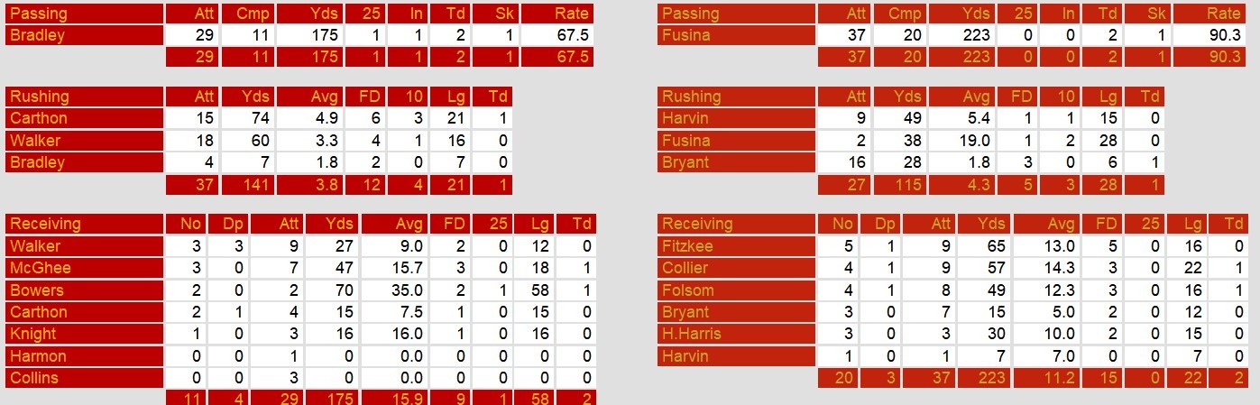 The Stars continued their momentum into the third quarter, with Kelvin Bryant’s 1-yard touchdown run bringing them within striking distance at 20-14. The fourth quarter proved decisive as Fusina connected with Collier on a 22-yard pass with just over four minutes left, securing a thrilling 21-20 comeback victory.