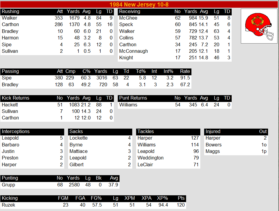 1984 New Jersey Generals Roster, Stats, and Recap