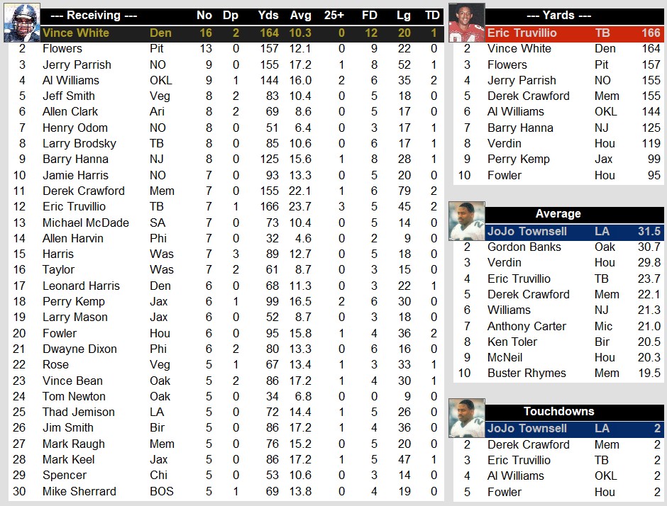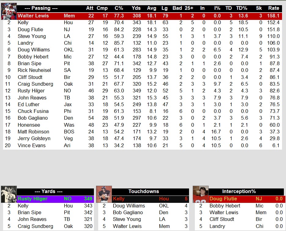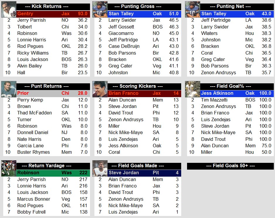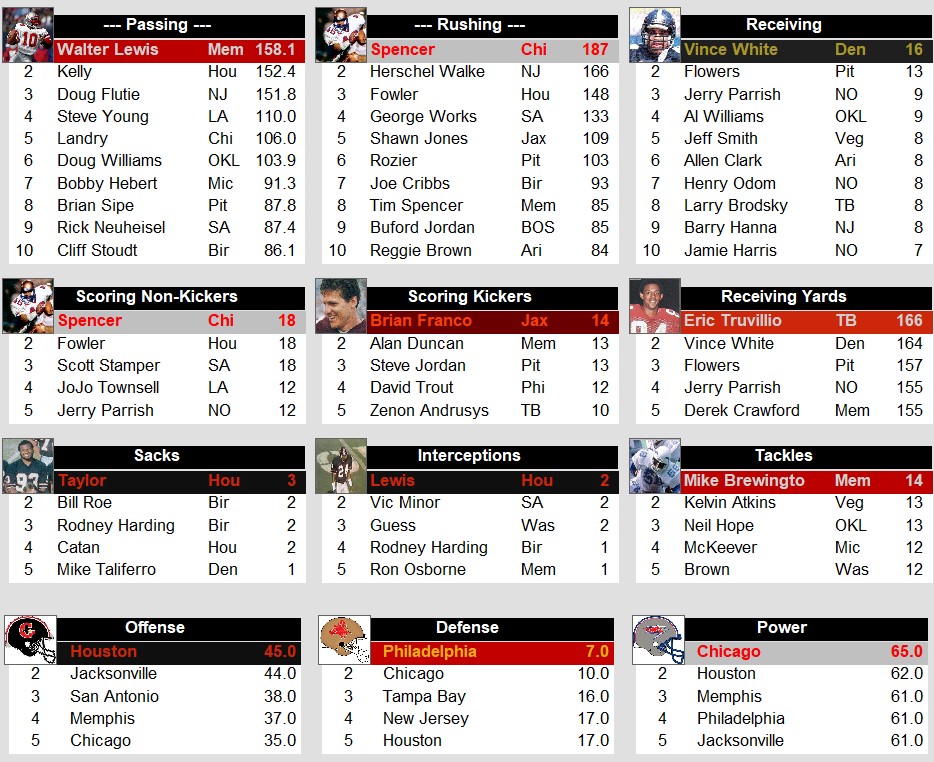 USFL Leaders After Week 1 (1985) Stats July 12, 2024July 12, 2024 Snapshot Passing Rushing Defense Special Teams Team Stats