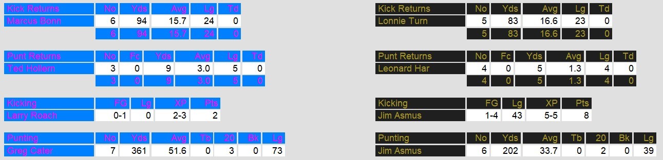 Bob Gagliano was the star of the game for Denver, throwing for five touchdowns and rushing for another. His aerial assault, coupled with a strong running game from Vince White, proved too much for the Las Vegas defense. The Gold defense also played a crucial role, intercepting Jerry Golsteyn twice and forcing multiple turnovers.