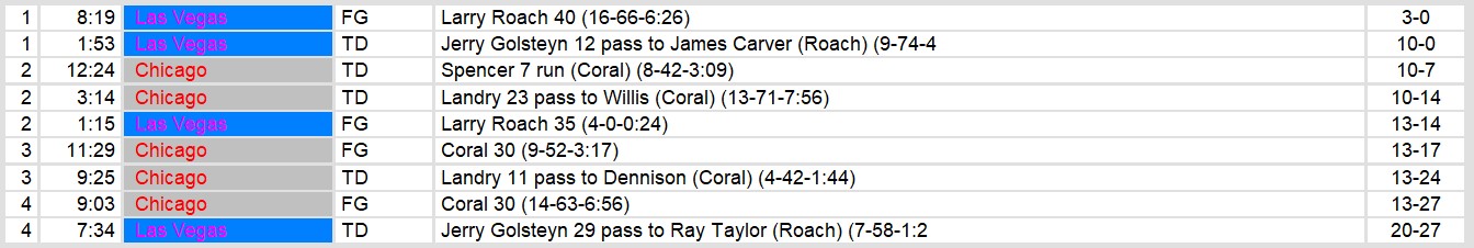 The Chicago Blitz secured a hard-fought 27-20 victory over the expansion Las Vegas Ace at Soldier Field, overcoming an early 10-0 deficit. Las Vegas came out strong, with a field goal and a touchdown pass from Jerry Golsteyn to James Carver in the first quarter. However, Chicago responded with a balanced offensive attack, led by running back Spencer and quarterback Landry, who connected on key plays to turn the game around.