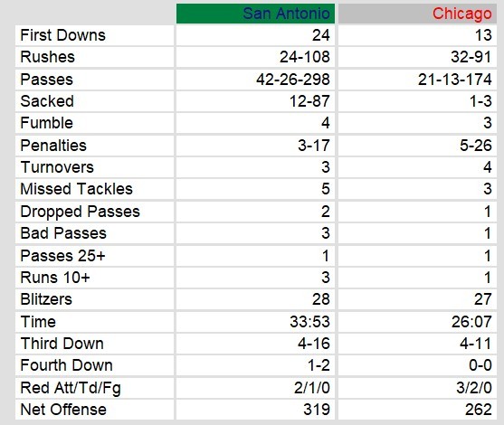 San Antonio Gunslingers 14, Chicago Blitz 17