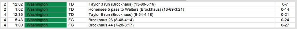 Washington’s offense, led by quarterback Honensee, controlled the game with long, methodical drives. The Federals scored twice in the second quarter, first on a 3-yard touchdown run by Billy Taylor, capping a 13-play, 80-yard drive, and later on a 5-yard touchdown pass from Honensee to Walters, finishing another 13-play drive that spanned 69 yards. Taylor added another touchdown run in the fourth quarter, as Washington’s balanced attack and time management kept Arizona’s defense on the field for much of the game.