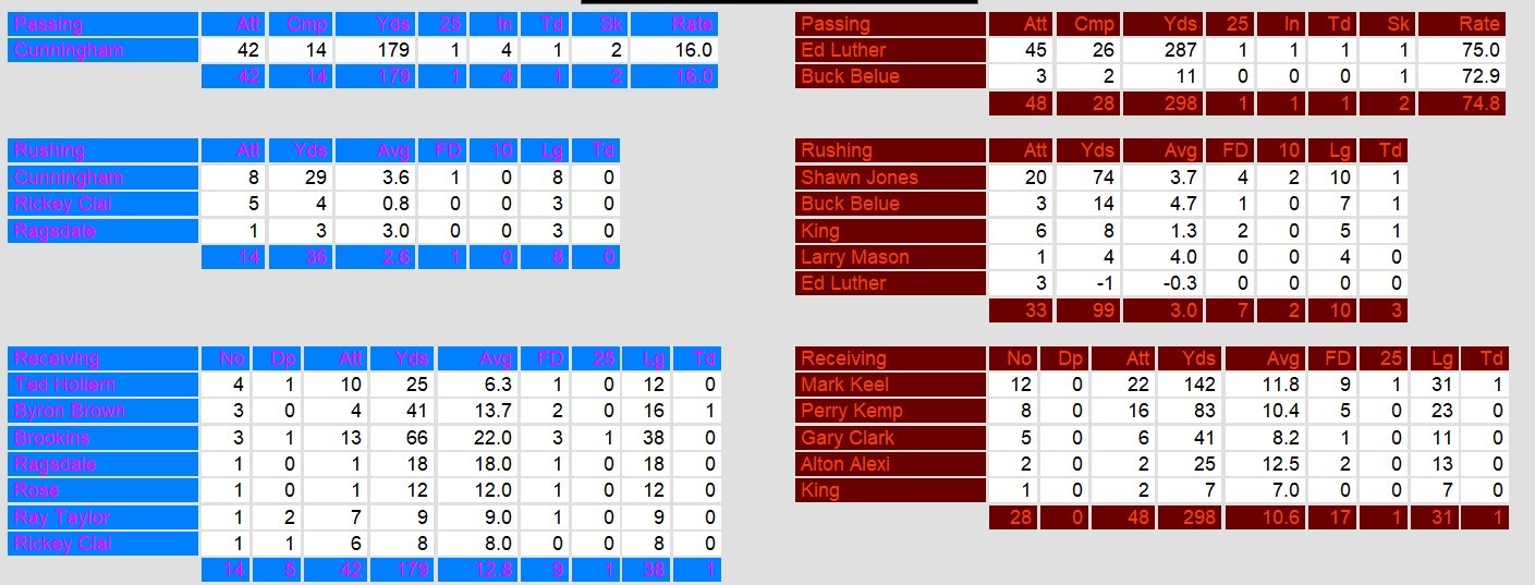 Despite a late touchdown from the Ace, a 15-yard pass from Cunningham to Byron Brown, Las Vegas remained winless on the season, falling to 0-5. The Ace struggled to generate momentum, managing only 201 yards of total offense and converting just 4 of 15 third downs. Jacksonville’s defense, led by Derek Batiste’s interception and Doug West’s sack, kept the pressure on all game, ensuring the Bulls secured a comfortable victory in front of their home crowd.
