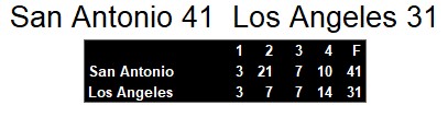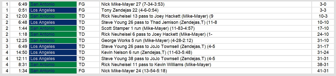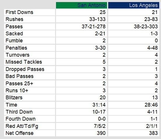 San Antonio Gunslingers 41, Los Angeles Express 31