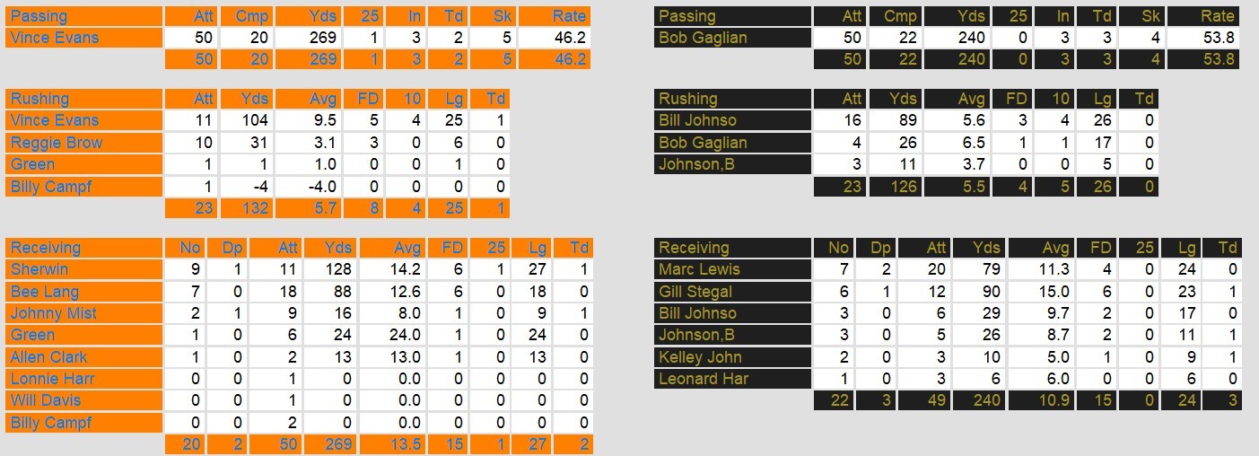 The Wranglers mounted a comeback in the fourth quarter, sparked by a 22-yard touchdown run by Vince Evans. With just 46 seconds left on the clock, Evans found Johnny Mistler for a 9-yard touchdown pass, capping off a 70-yard drive and giving Arizona a one-point lead. Denver’s final drive fell short, as time expired, leaving the Gold with a heartbreaking 24-23 loss. Vince Evans was named the game’s MVP, finishing with 269 passing yards, two touchdowns, and a crucial rushing touchdown, leading Arizona to a dramatic victory.