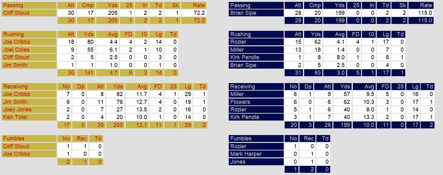 In the closing moments, Brian Sipe orchestrated a clutch 66-yard drive, hitting Pendleton for an 8-yard touchdown with less than a minute remaining to give the Maulers a 21-13 lead. Birmingham made a valiant effort in the final seconds, driving 66 yards in just 44 seconds. Stoudt connected with Joe Cribbs for a 9-yard touchdown as time expired, but their two-point conversion attempt failed, sealing the 21-19 victory for Pittsburgh. Sipe, who threw for 199 yards and two touchdowns, was named MVP of the game.