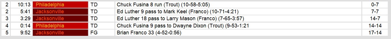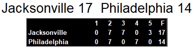 Jacksonville Bulls 17, Philadelphia Stars 14