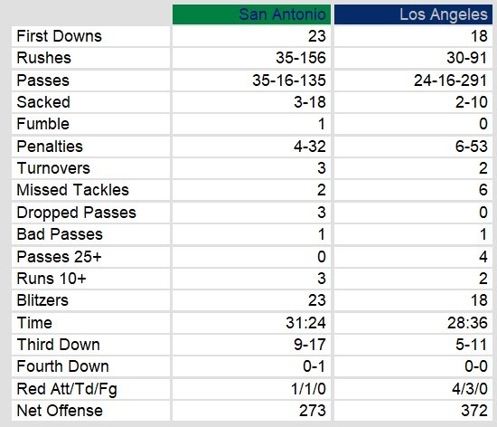 San Antonio Gunslingers 14, Los Angeles Express 28