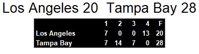 Los Angeles Express 20, Tampa Bay Bandits 28
