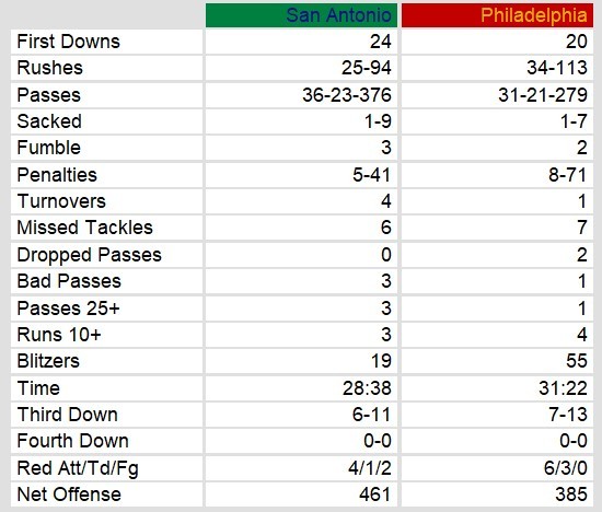 San Antonio Gunslingers 26, Philadelphia Stars 28