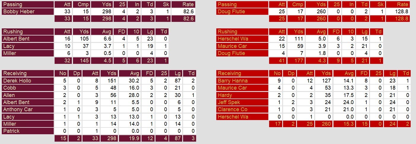 Doug Flutie earned MVP honors with 260 passing yards and two touchdowns, while Walker contributed 111 yards on the ground. The win improved New Jersey to 7-2-1, while Michigan dropped to 3-7, despite Hebert’s impressive 298 passing yards and three touchdowns.